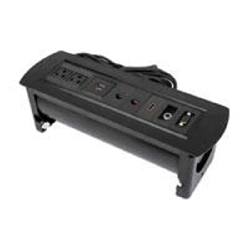 FEATURES: ESTACIóN DE CARGA EMPOTRABLE CON DOS TOMAS DE CORRIENTE Y DOS PUERTOS DE CARGA USB-A DOS PUERTOS DE CARGA USB-A CON LED Y UNA SALIDA DE HASTA 2.1 A / 5 V DC (MáX.) CONEXIóN DE PASO HDMI CON PUERTO HDMI Y CABLE HDMI DE 1.5 M - SOPORTA RESOLUCIONES DE HASTA 1080P@60HZ CONEXIóN DE PASO VGA CON PUERTO VGA Y CABLE VGA DE 1.5 M - SOPORTA RESOLUCIONES DE HASTA 1080P@60HZ CONEXIóN DE PASO DE AUDIO CON PUERTO ESTéREO DE 3,5 MM Y CABLE DE 1.5 M CON ENCHUFE ESTéREO DE 3,5 MM CONEXIóN DE PASO GIGABIT ETHERNET CON DOS PUERTOS RJ45 Y DOS CABLES DE RED DE 1.5 M PáNEL DE CARGA/CONECTIVIDAD DE APERTURA GIRATORIA QUE SE PUEDE OCULTAR CUANDO NO ESTá EN USO IDEAL PARA SU INSTALACIóN EN UN ESCRITORIO DE OFICINA, MESA DE SALA DE CONFERENCIAS, BANCO DE TRABAJO U OTRA SUPERFICIE PROTECCIóN CONTRA SOBRECARGA, SOBRECORRIENTE Y SOBRECALENTAMIENTO ADMINISTRACIóN DE CABLES INCORPORADA PARA UNA APARIENCIA SIN DESORDEN MATERIAL DE ALEACIóN DE ALUMINIO DURABLE Y DE ALTA CALIDAD TRES AñOS DE GARANTíA ESPECIFICACIONES: ESTáNDARES Y CERTIFICACIONES: FCC (COMISIóN FEDERAL DE COMUNICACIONES) CONEXIONES: DOS TOMAS DE CORRIENTE ALTERNA (NEMA 5-5) DOS PUERTOS DE CARGA USB-A (2.1 A / 5 V DC MáX.) DOS PUERTOS ETHERNET RJ45 (10/100/1000 MBPS) UN PUERTO HDMI (RESOLUCIONES HASTA 1080P@60HZ) UN PUERTO VGA (RESOLUCIONES HASTA 1080P@60HZ) UN PUERTO DE AUDIO (3.5 MM ESTéREO) CARACTERíSTICAS DE ENTRADA VOLTAJE NOMINAL DE CA: 100 - 240 V RANGO DE FRECUENCIA: 50 - 60 HZ