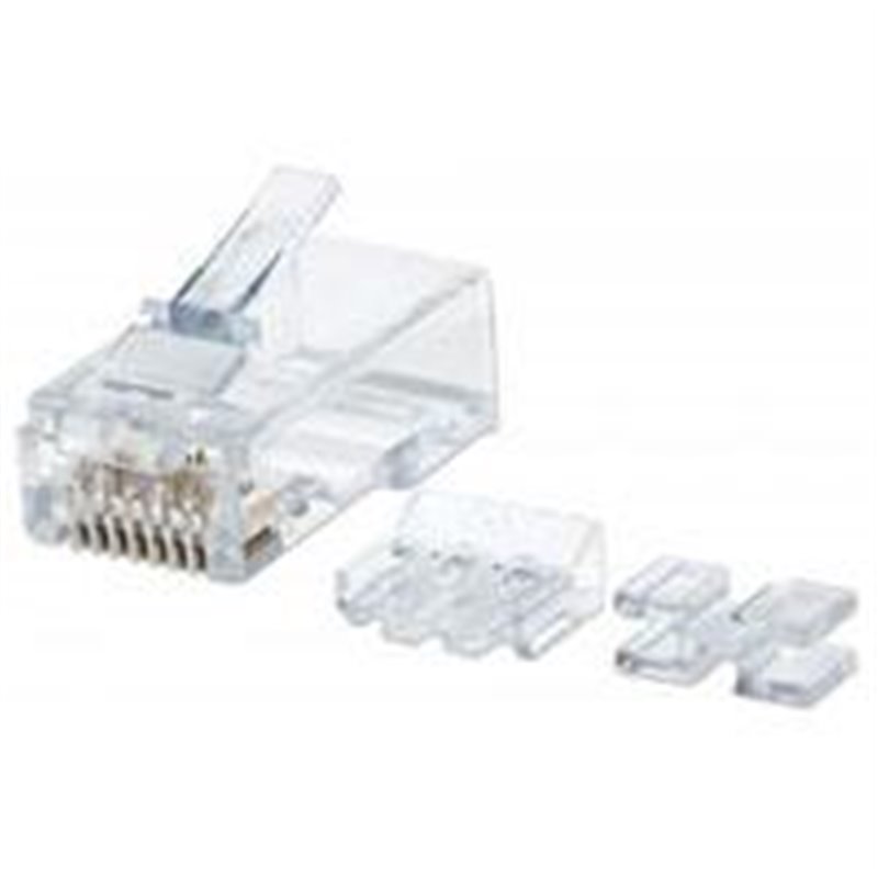 *PLUG MODULAR RJ45 CAT6A *CONTACTOS CON CHAPA DE ORO DE 50 µ *TERMINAL DE 3 PUNTAS PARA CABLE SóLIDO *AJUSTE PARA CABLE REDONDO *PARA APLICACIONES EN PAR TRENZADO SIN BLINDAR *DISEñO ESTANDAR 8P8C, COMPATIBLE CON TODAS LAS CONEXIONES RJ45 *TOTALMENTE COMPATIBLE CON APLICACIONES CAT 3, 4, 5, 6 Y 6A LOS PLUGS MODULARES INTELLINET RJ45 DE 8 POSICIONES, 8 CONTACTOS (8P8C) BRINDAN A NUESTROS CLIENTES OPCIONES PARA CABLES CAT5E, CAT6 Y CAT6A EN VARIEDADES BLINDADAS Y SIN BLINDAR. OFRECEMOS CONTACTOS CON 15 MICRAS DE ORO PARA NUESTROS PLUGS ESTáNDAR O UN ESTáNDAR DE ALTA CALIDAD CON 50 MICRAS EN NUESTRAS LíNEAS PREMIUM Y PRO.