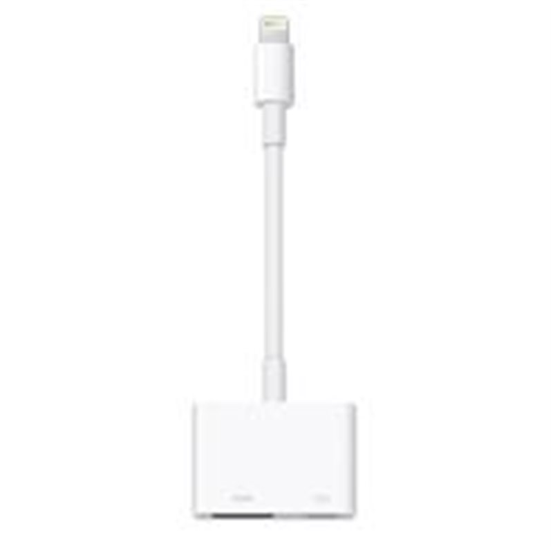 USA EL ADAPTADOR DE LIGHTNING A AV DIGITAL CON TU IPHONE, IPAD O IPOD CON CONECTOR LIGHTNING. EL ADAPTADOR DE LIGHTNING A AV DIGITAL PERMITE DUPLICAR LO QUE APARECE EN LA PANTALLA DE TU DISPOSITIVO, COMO APPS, PRESENTACIONES, SITIOS WEB Y MUCHO MÁS, EN TU PANTALLA, PROYECTOR, TV CON HDMI U OTRA PANTALLA COMPATIBLE EN HD DE HASTA 1080P. TAMBIÉN REPRODUCE CONTENIDO DE VIDEO, COMO PELÍCULAS, PROGRAMAS DE TV Y VIDEOS, EN TU PANTALLA GRANDE EN HD DE HASTA 1080P. SOLO TIENES QUE CONECTAR TU ADAPTADOR LIGHTNING A AV DIGITAL AL CONECTOR LIGHTNING DE TU DISPOSITIVO Y, LUEGO, A TU TV O PROYECTOR A TRAVÉS DE UN CABLE HDMI (SE VENDE POR SEPARADO).
