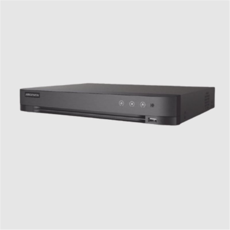 DVR Hikvision IDS7208HQHIM1/XT 8 canales turboHD + 4 canales IP 5 mpx lite 3k audio de dos vias por coaxial reconocimiento facial ACUSENSE 1 bahia de disco duro salida de video full HD